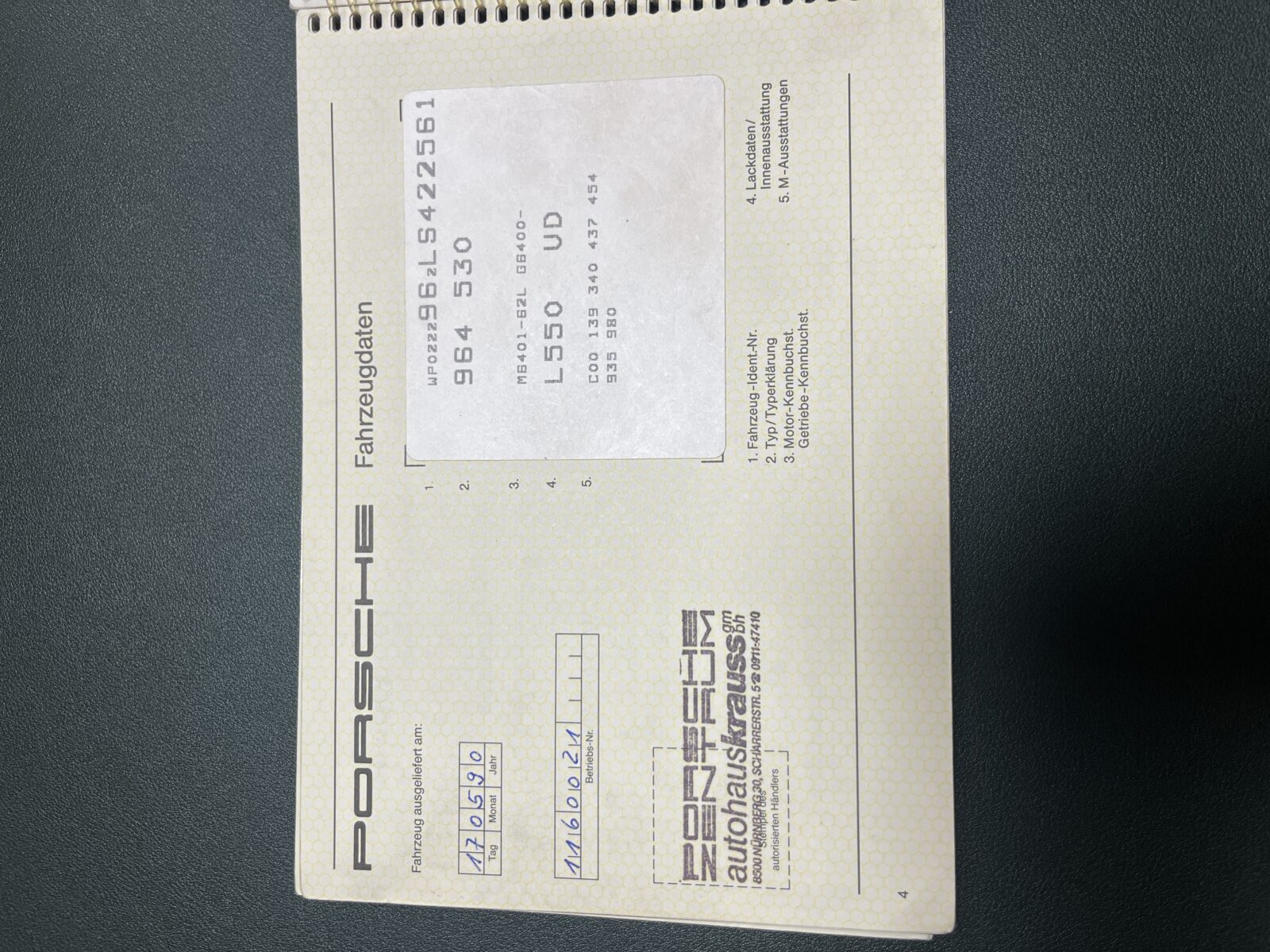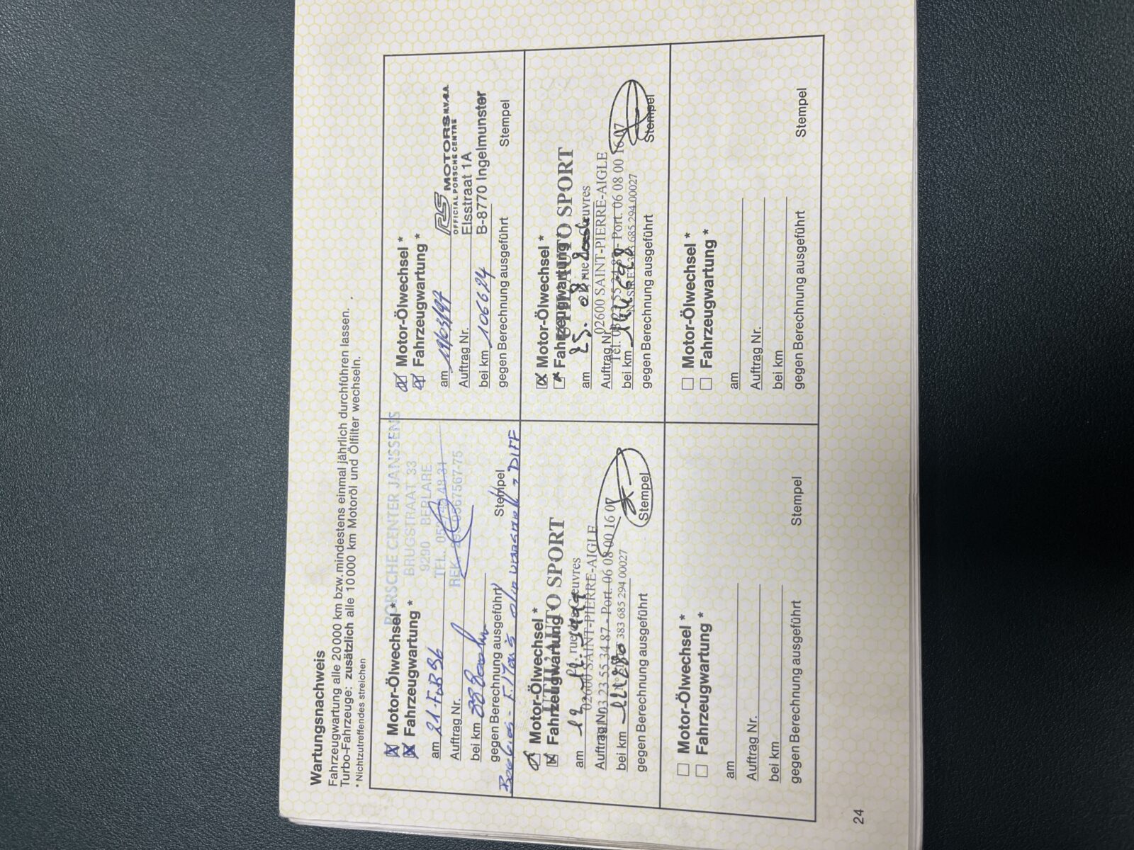 Historique disponible, carnets Porsche, carnet d’entretien, manuel d’utilisation, photos, factures d’entretien