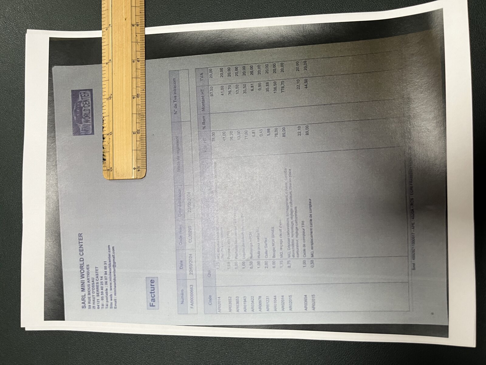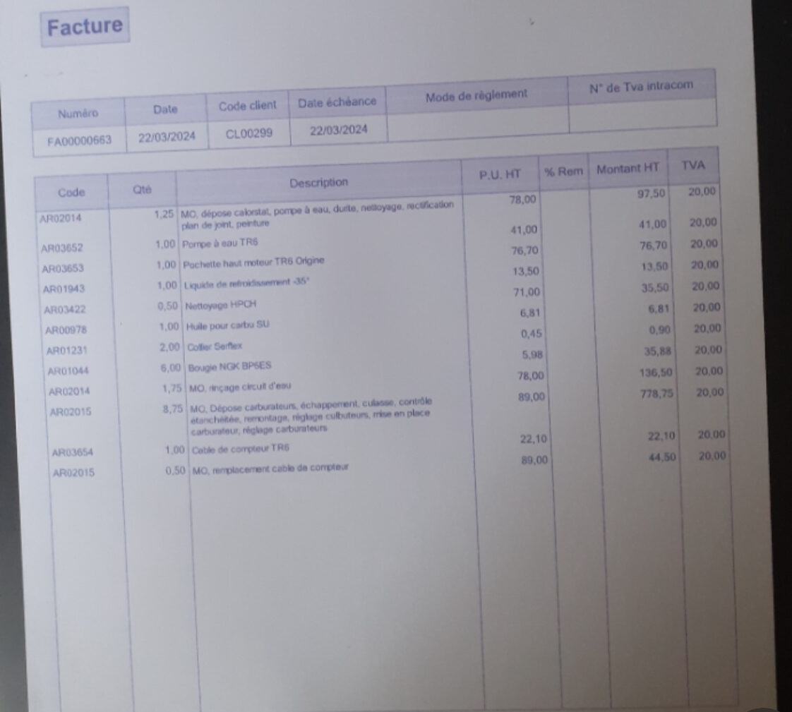 Travaux effectués en Mars 2024:
